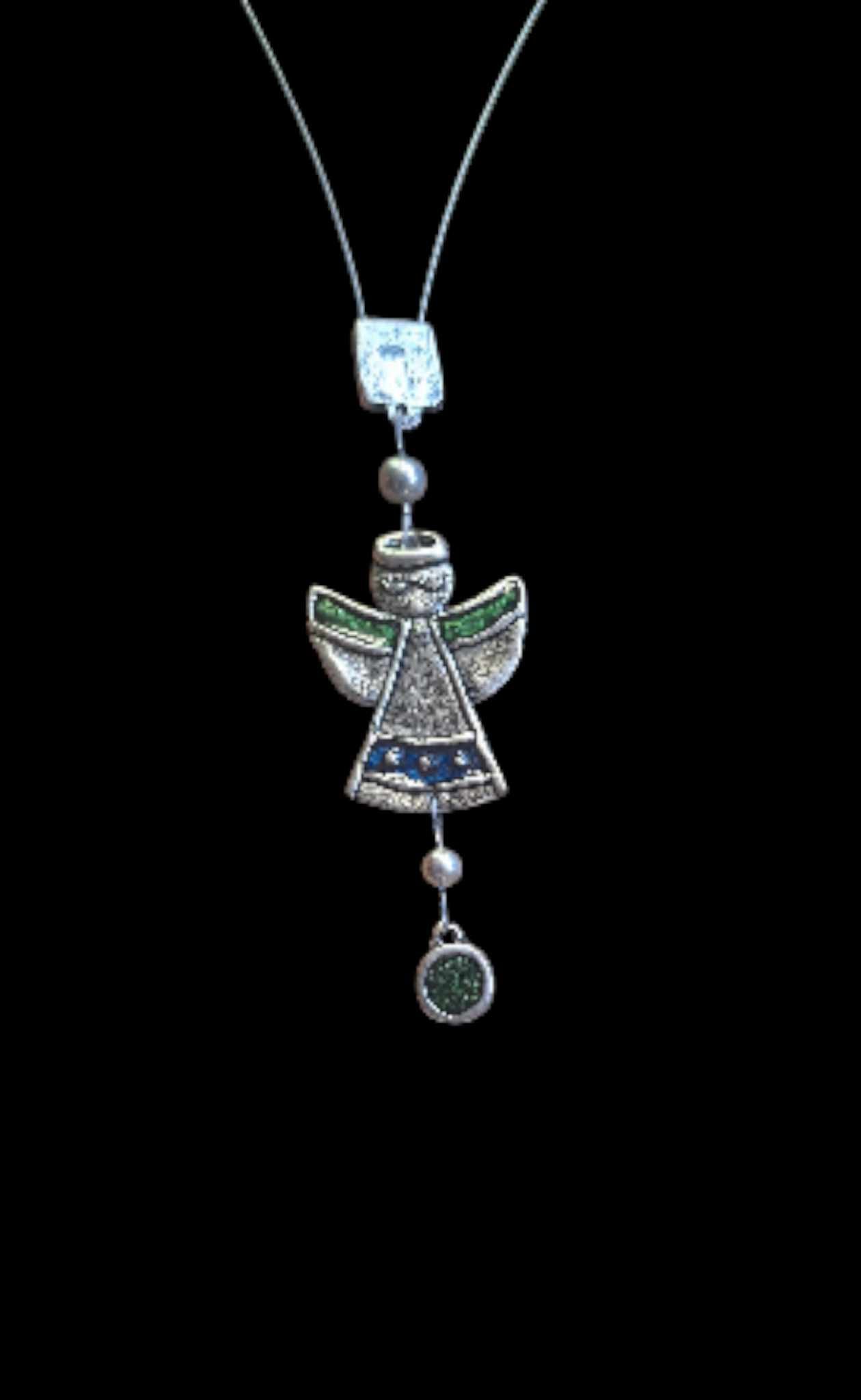 Minta: nagy méretű, ezüst színű, angyal alakú medál hosszú lánconMedál anyaga: réz alap ezüstözve, amely króm és nikkel mentes, így allergiások is hordhatják