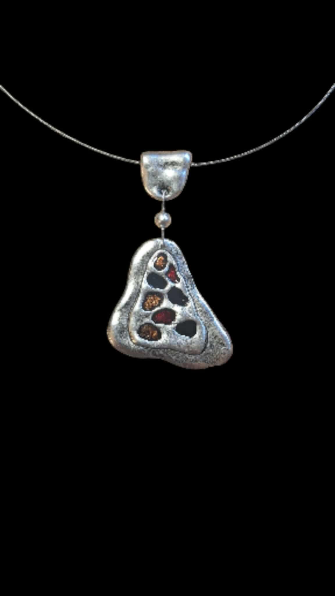 Minta: nagy méretű, ezüst színű, háromszög alakú medál
