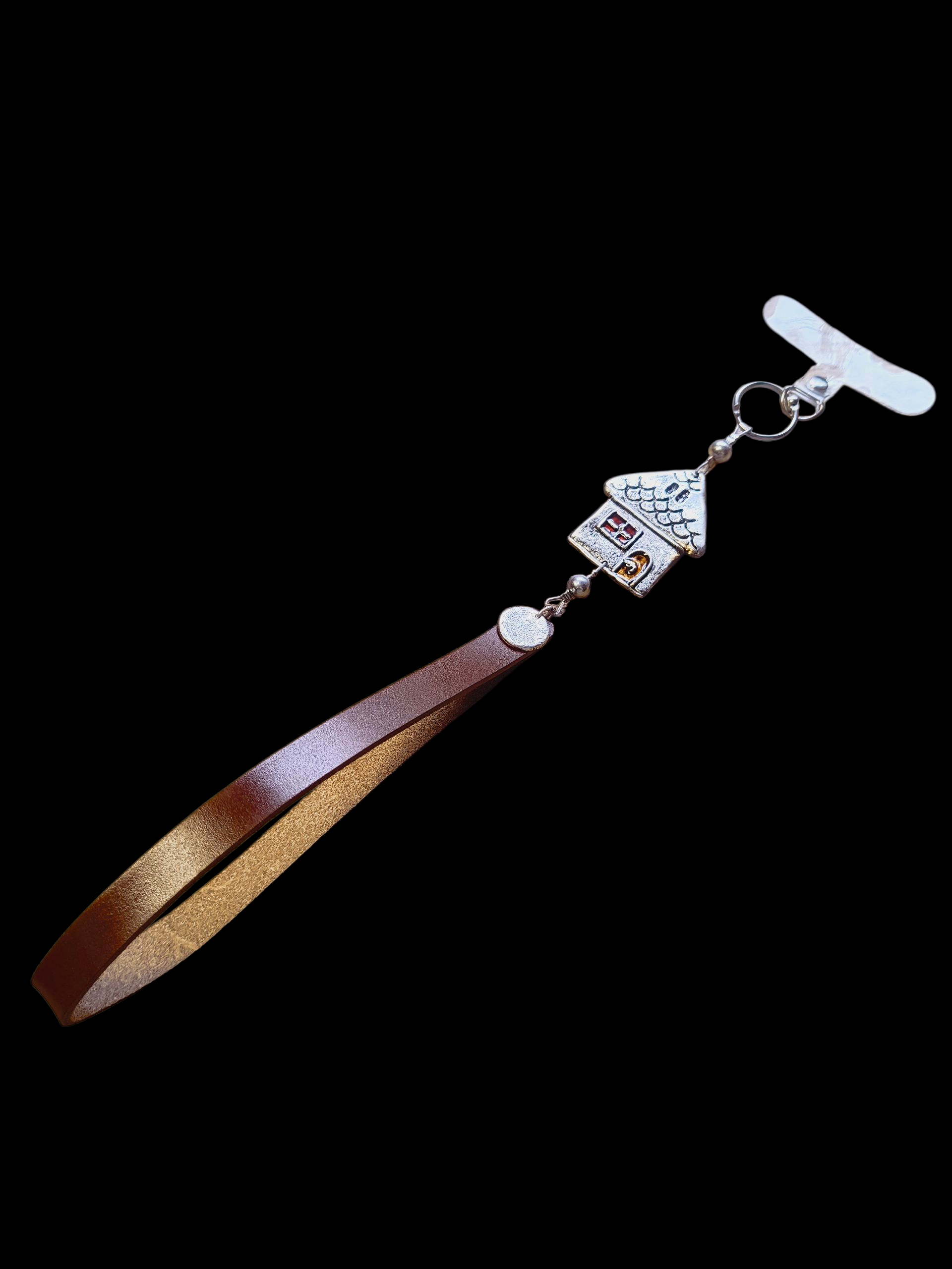 Házikó csuklóra akasztható valódi bőr telefontartó