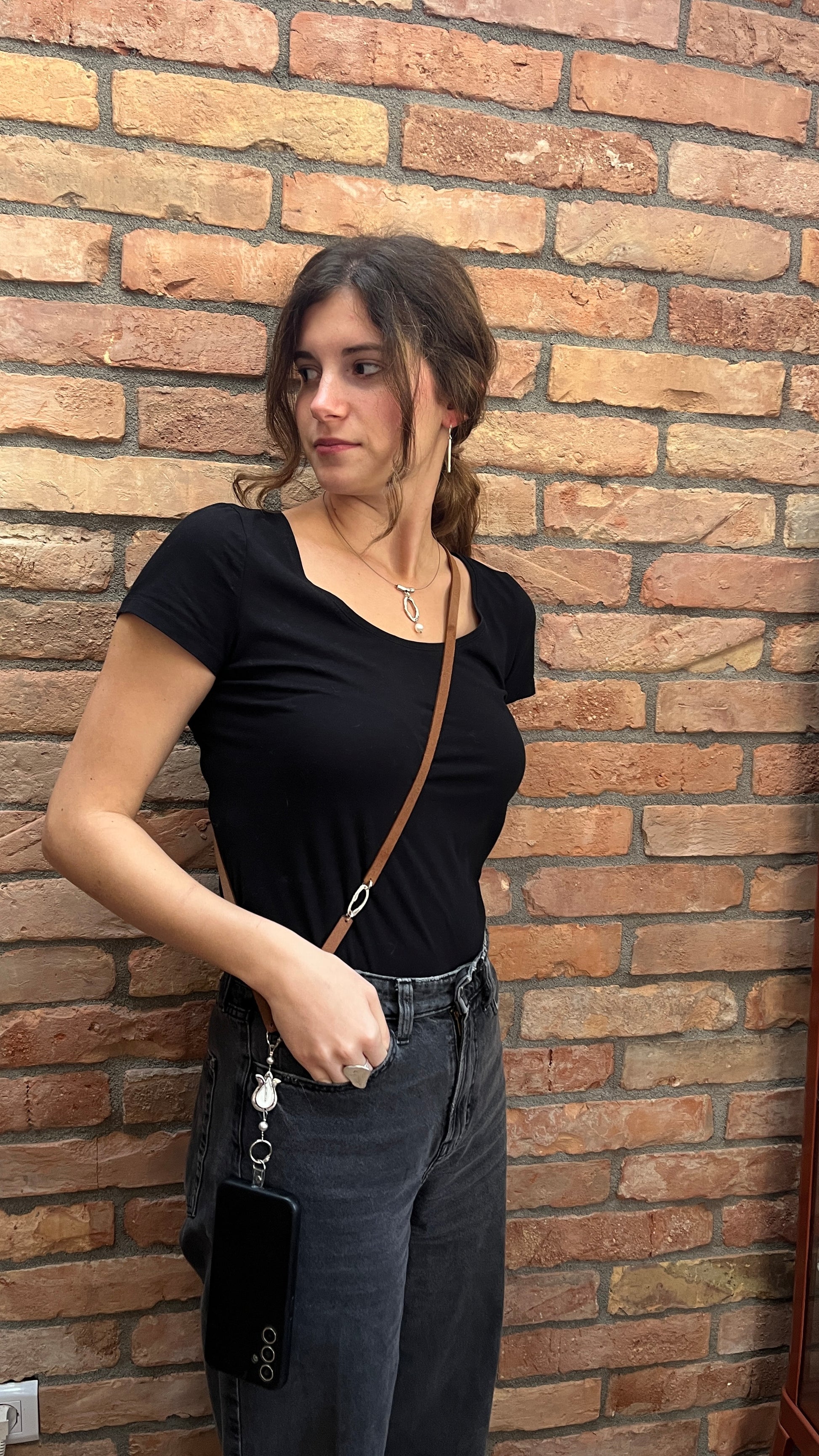 Nyuszi vállra akasztható valódi bőr telefontartó