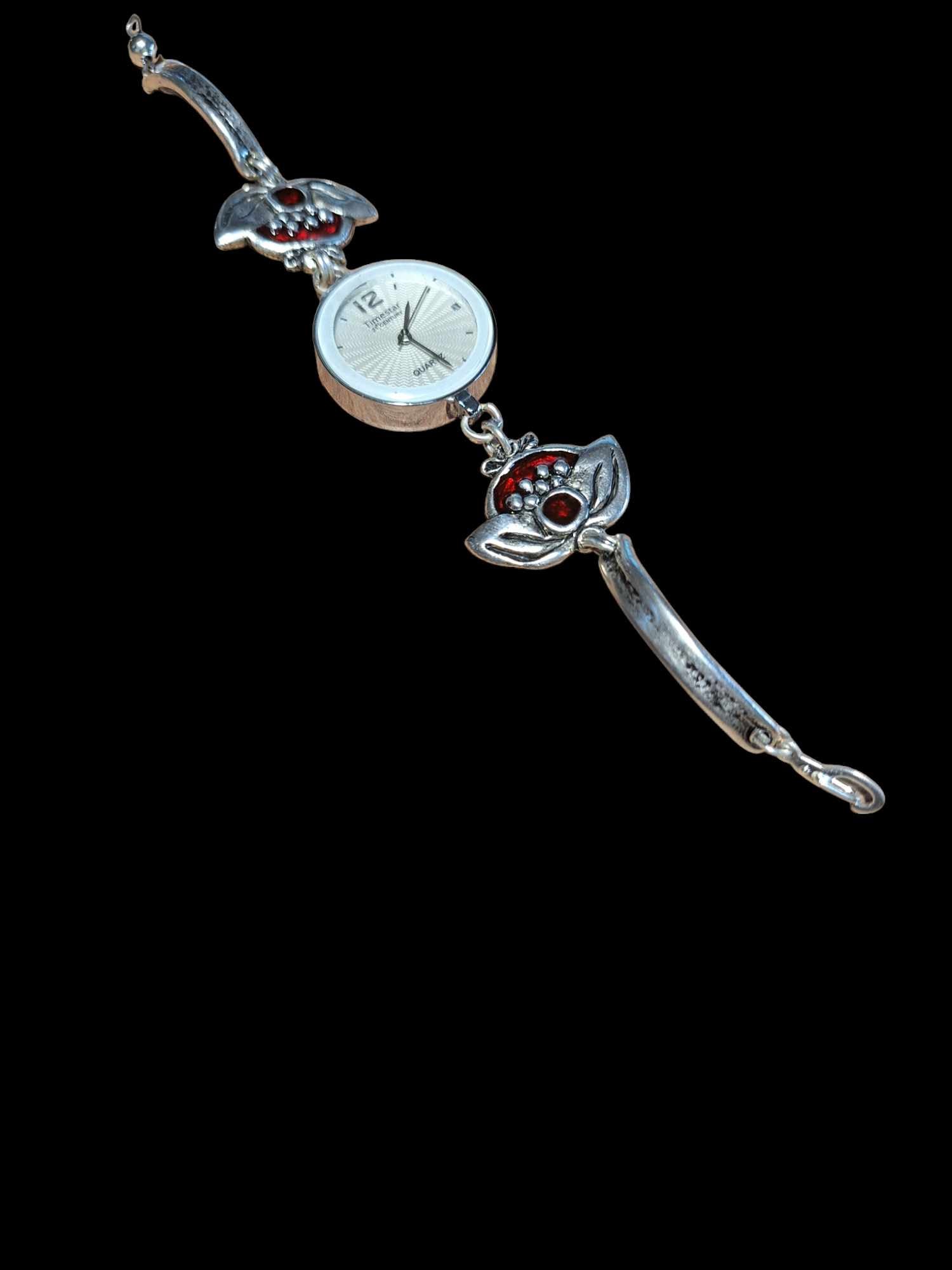 Anyaga: réz alap ezüstözve, amely króm és nikkel mentes, így allergiások is hordhatják/az óra lap nem saját gyártás, így annak allergia mentességét nem tudjuk garantálni