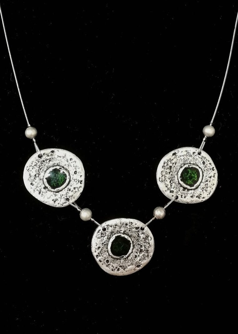 Chain material: steel wire with plastic coating so this part of the necklace is not allergenic either