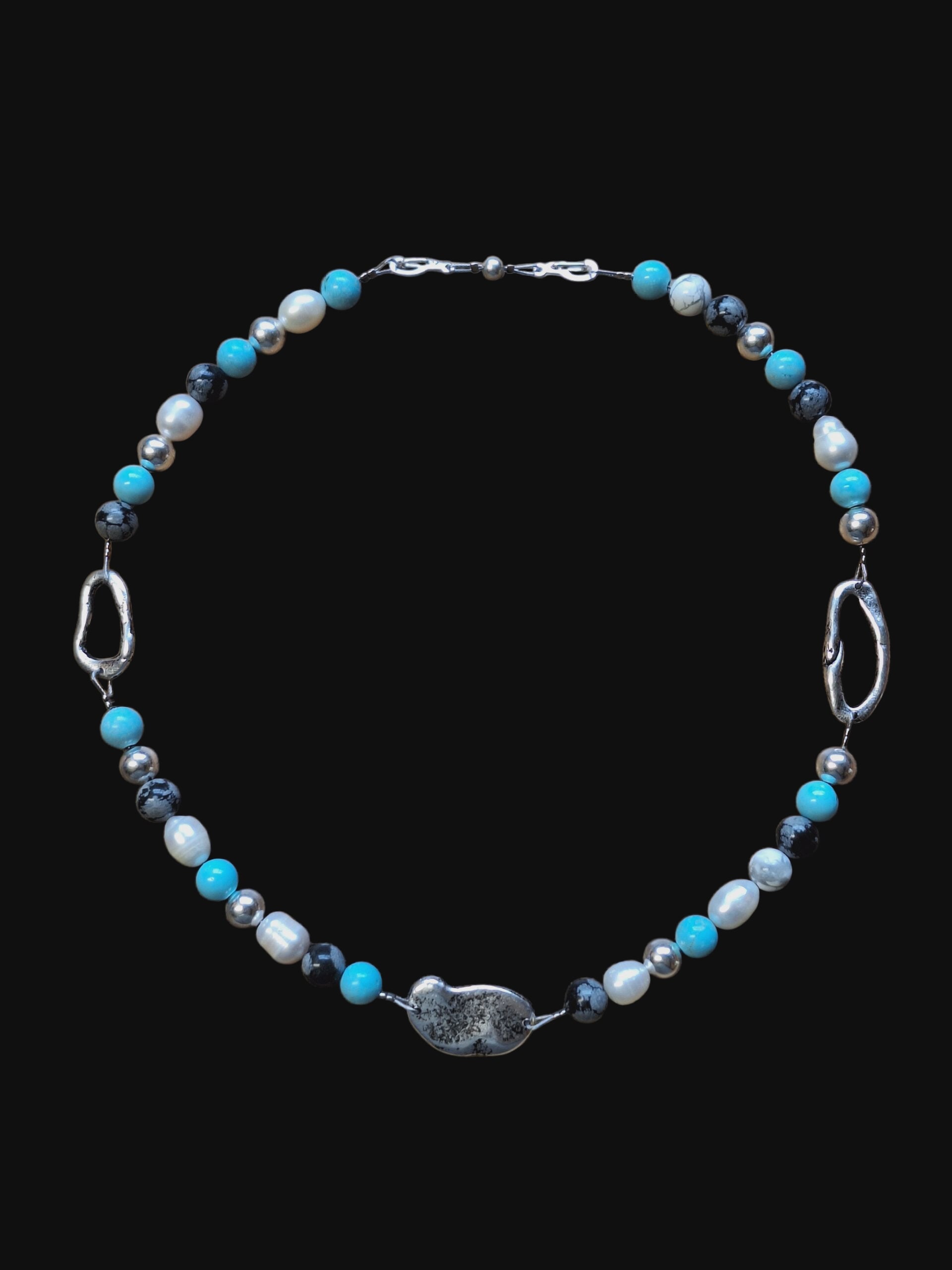 4 funkciós lánc türkiz kövekkel, pecsét medálokkal