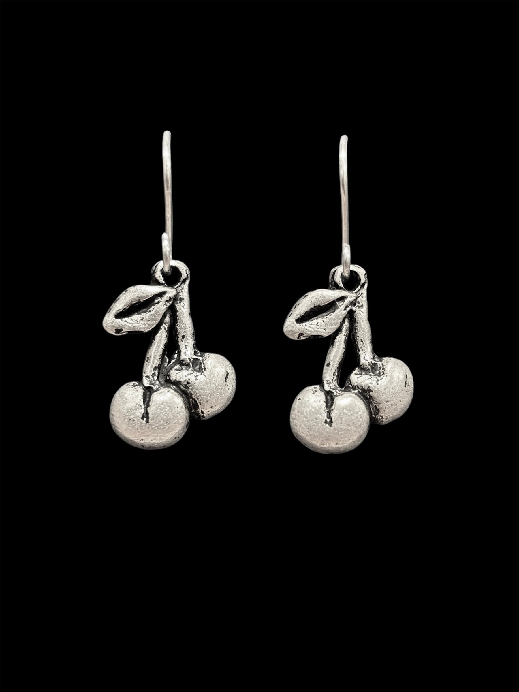 Minta: kis méretű, ezüst színű, cseresznye alakú medálKampó és medál anyaga: réz alap ezüstözve, amely króm és nikkel mentes, így allergiások is hordhatják