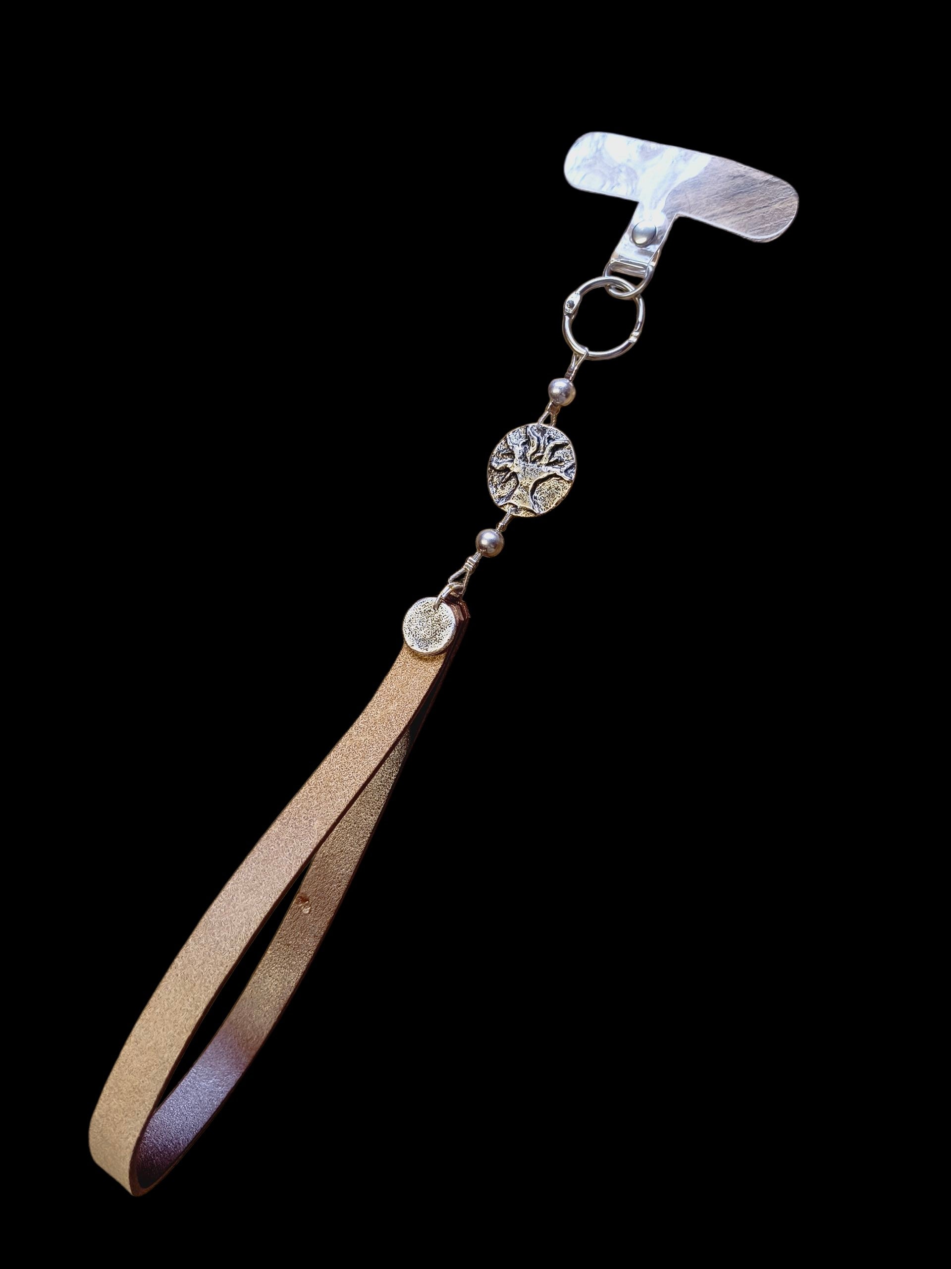 Életfa csuklóra akasztható valódi bőr telefontartó