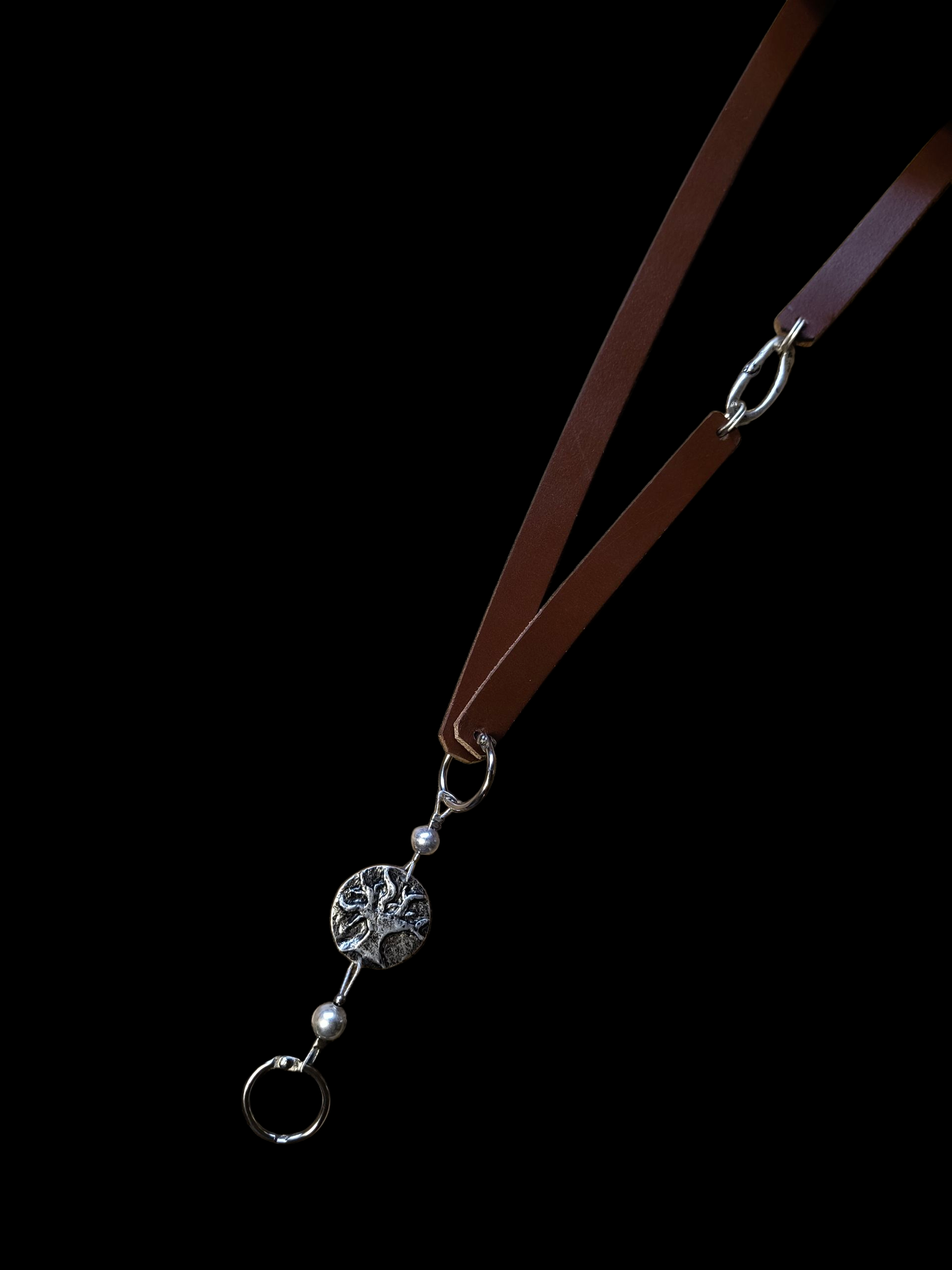A pántot ezüstözött kézműves medál díszíti, melyek egyedivé és személyessé teszik a kiegészítőt.