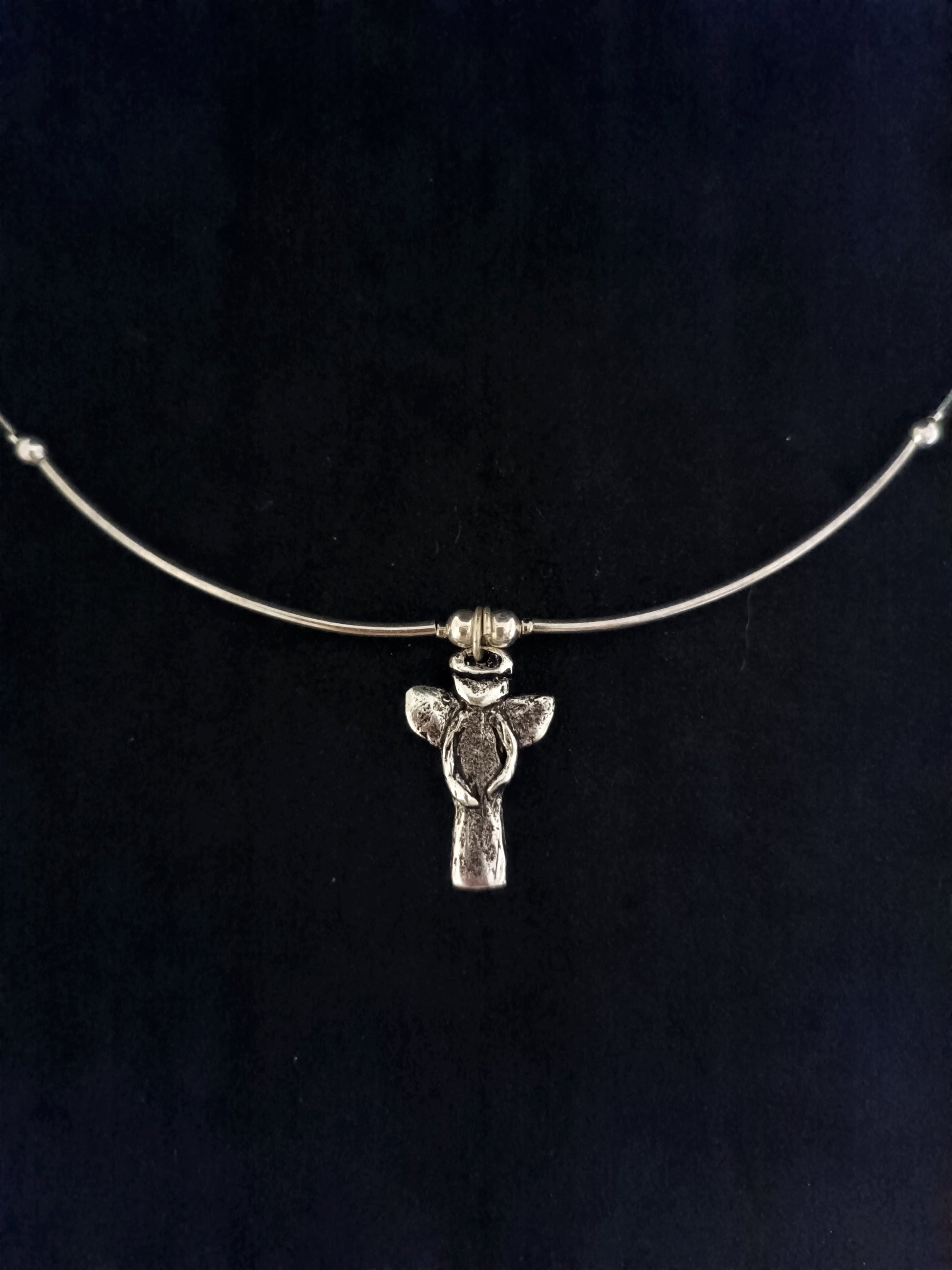 Minta: kis méretű, ezüst színű, angyalkás medál klasszikus lánconMedál anyaga: réz alap ezüstözve, amely króm és nikkel mentes, így allergiások is hordhatják
