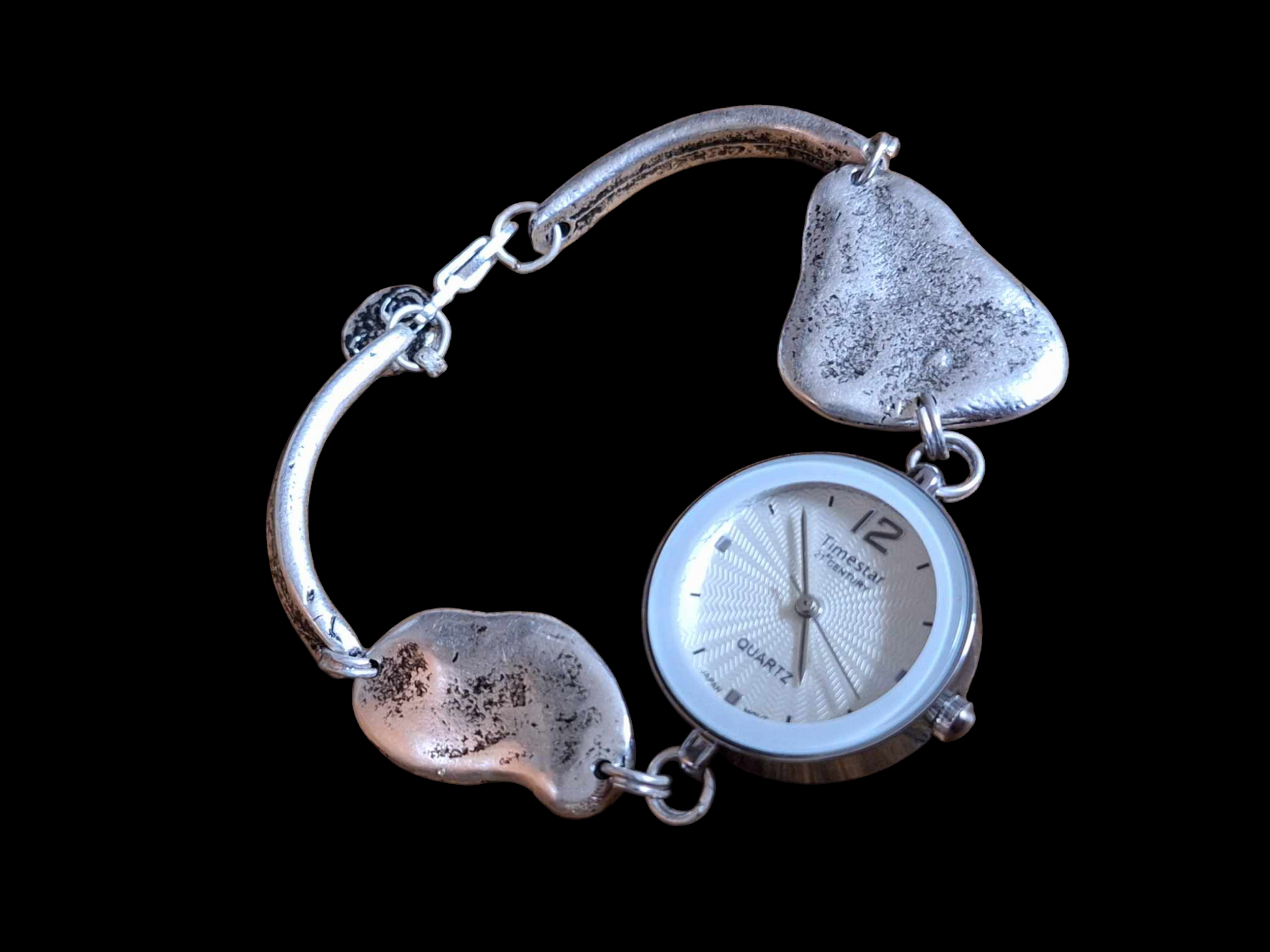 Anyaga: réz alap ezüstözve, amely króm és nikkel mentes, így allergiások is hordhatják/az óra lap nem saját gyártás, így annak allergia mentességét nem tudjuk garantálni