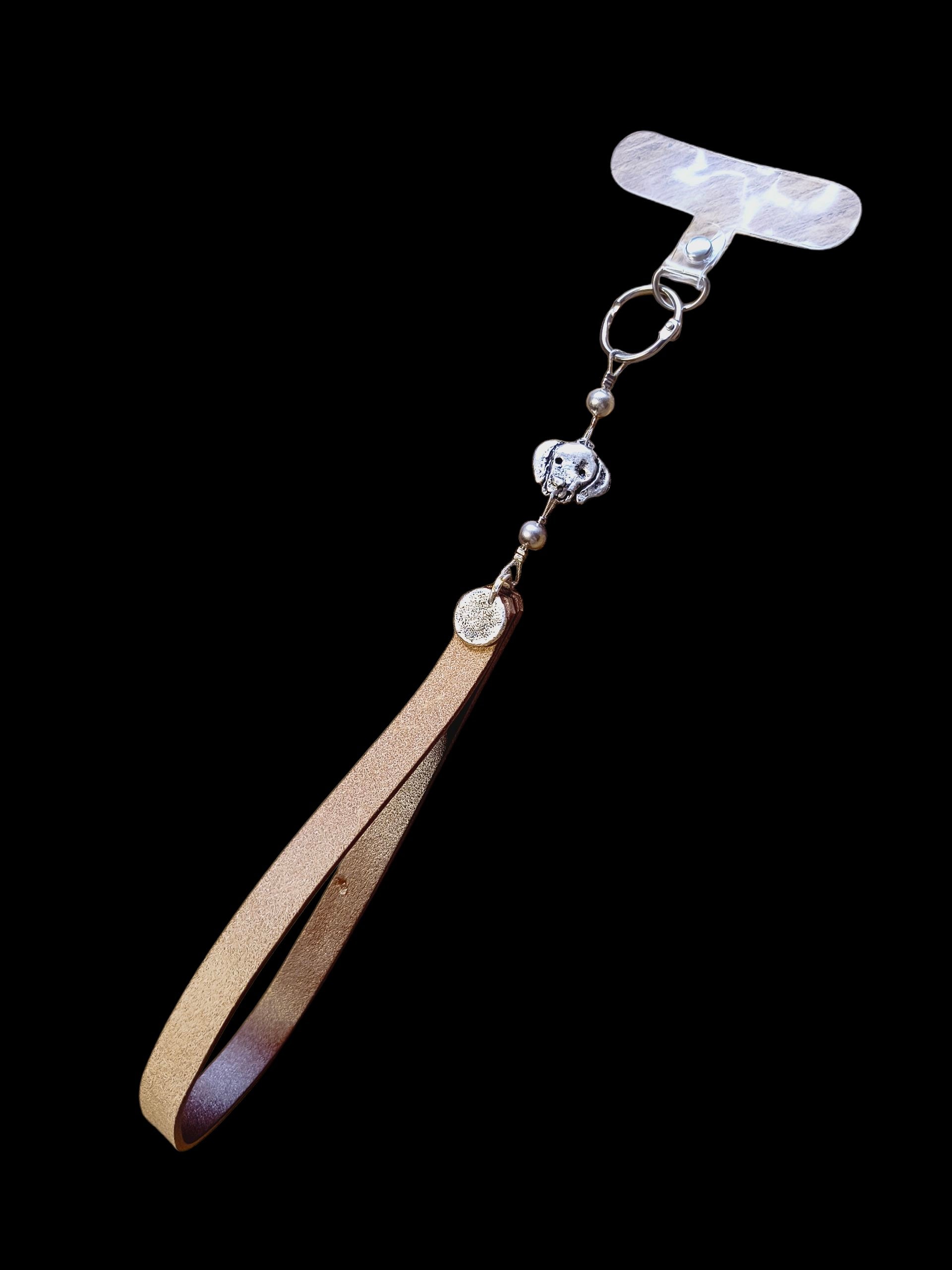 Kicsi kutyafej csuklóra akasztható valódi bőr telefontartó
