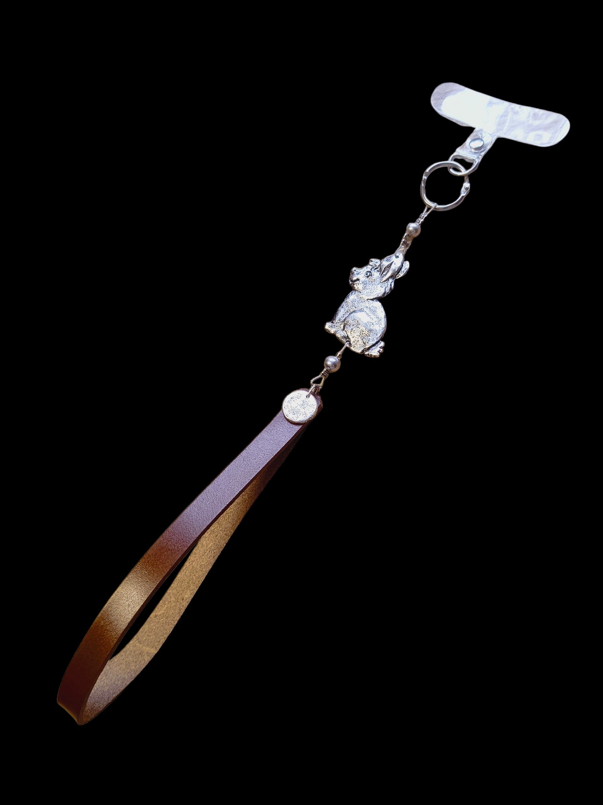 Nyuszi csuklóra akasztható valódi bőr telefontartó