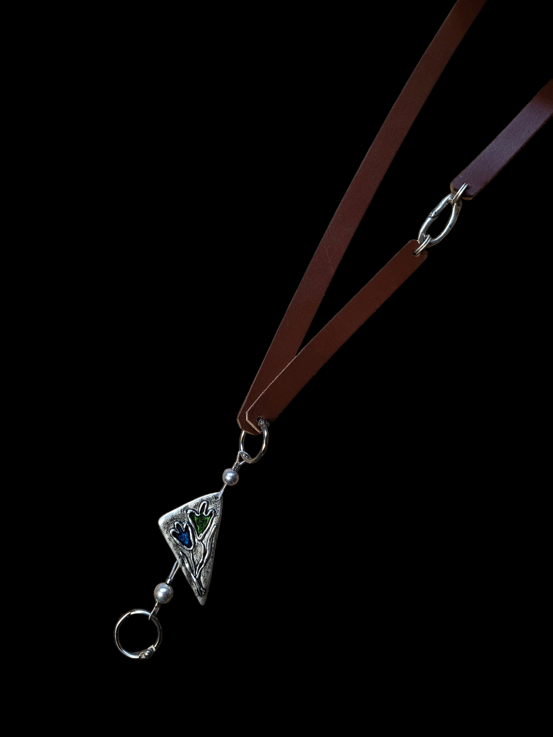 Stilizált duplatulipán vállra akasztható valódi bőr telefontartó