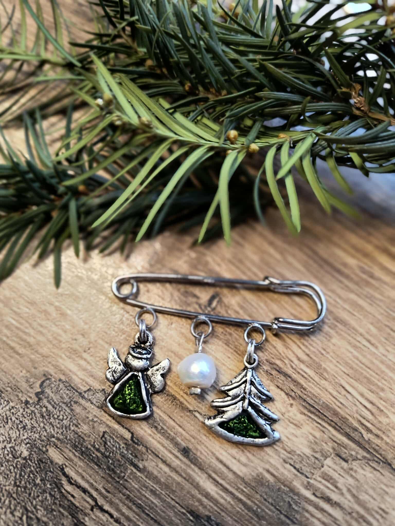 Minta: angyalka és fenyőfa ihlette medál édesvízi tenyésztett gyönggyel