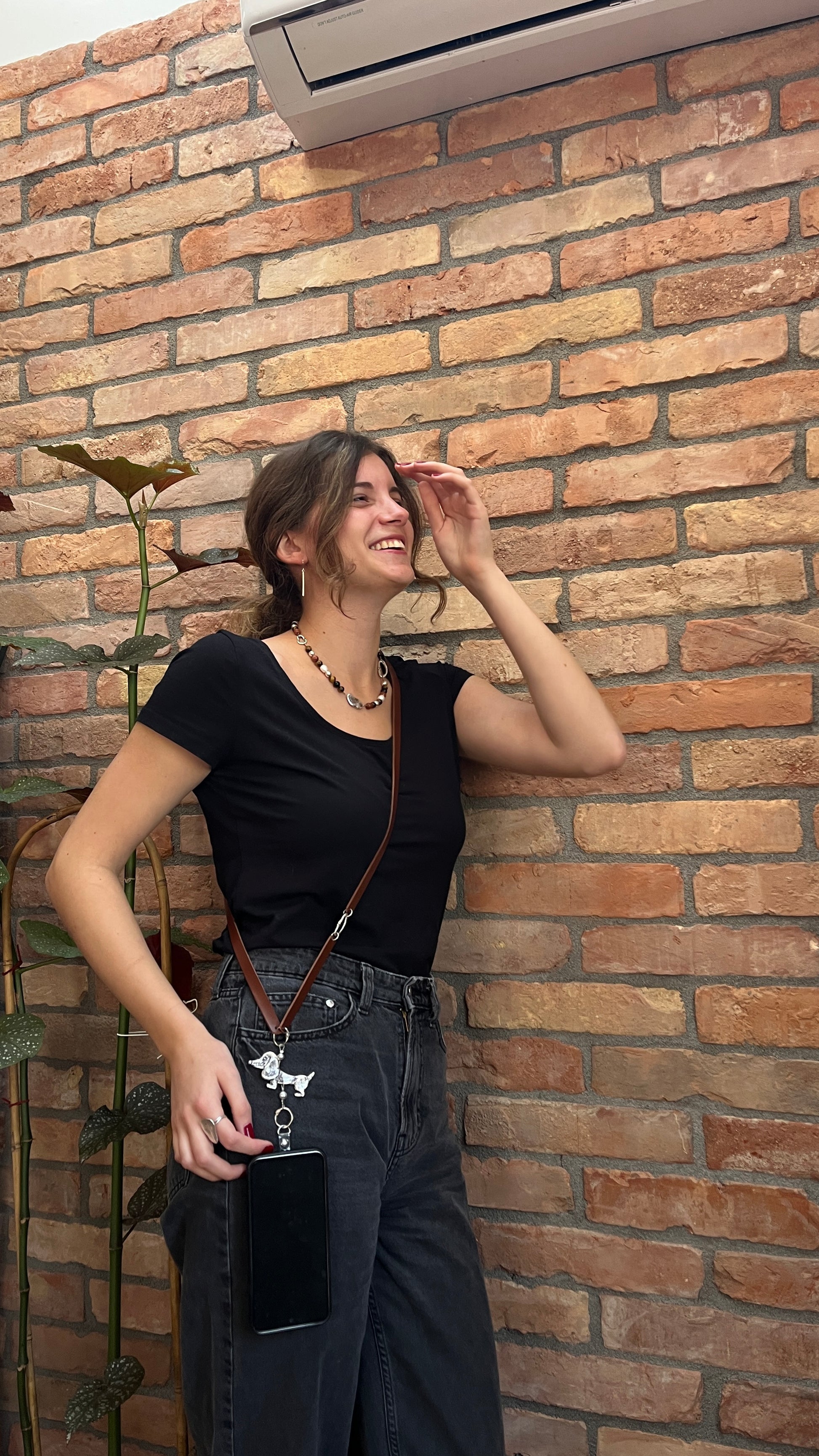 Választható bőr telefontartó ezüstözött medállal