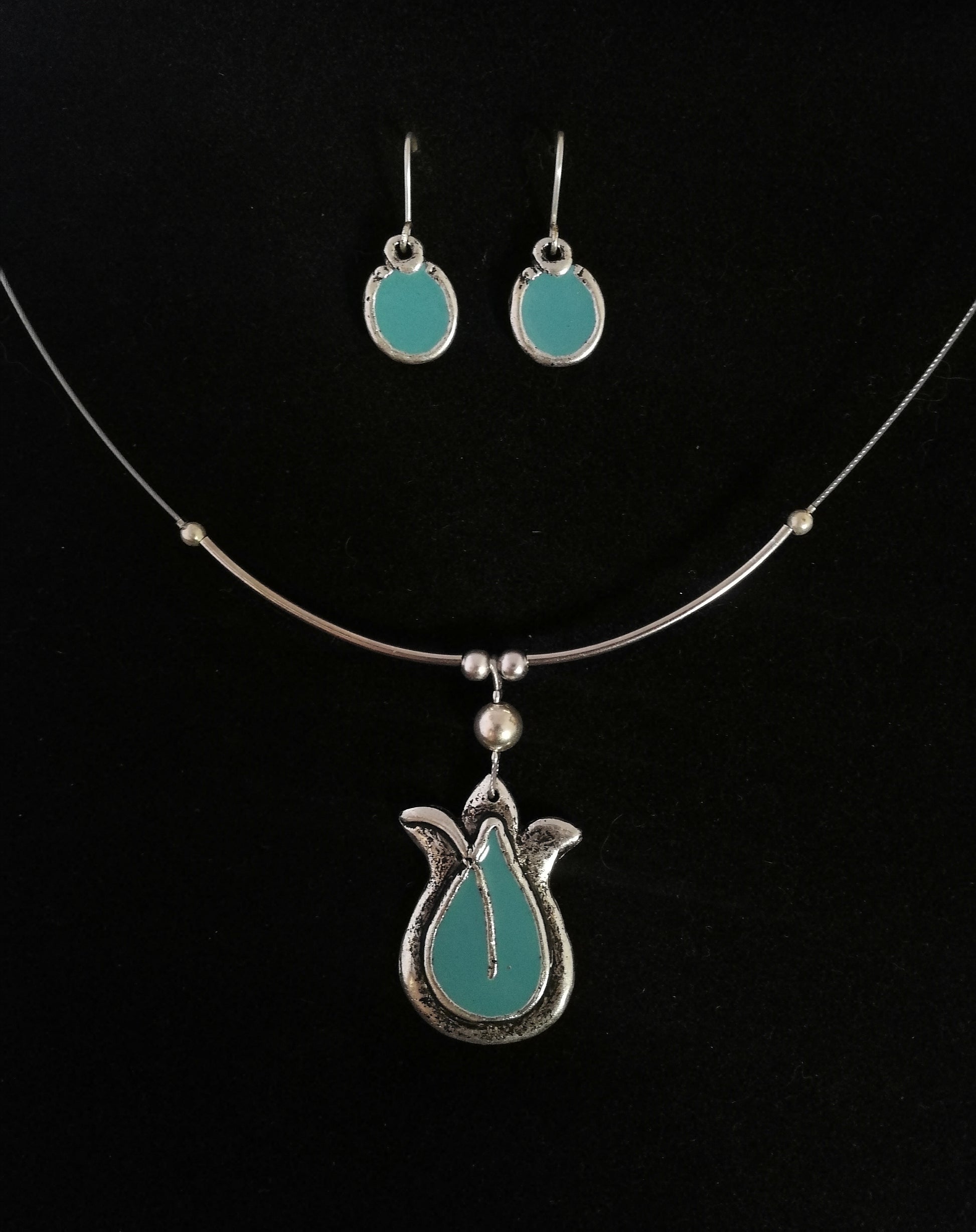 Minta: kis méretű, ezüst színű, tulipán alakú medál